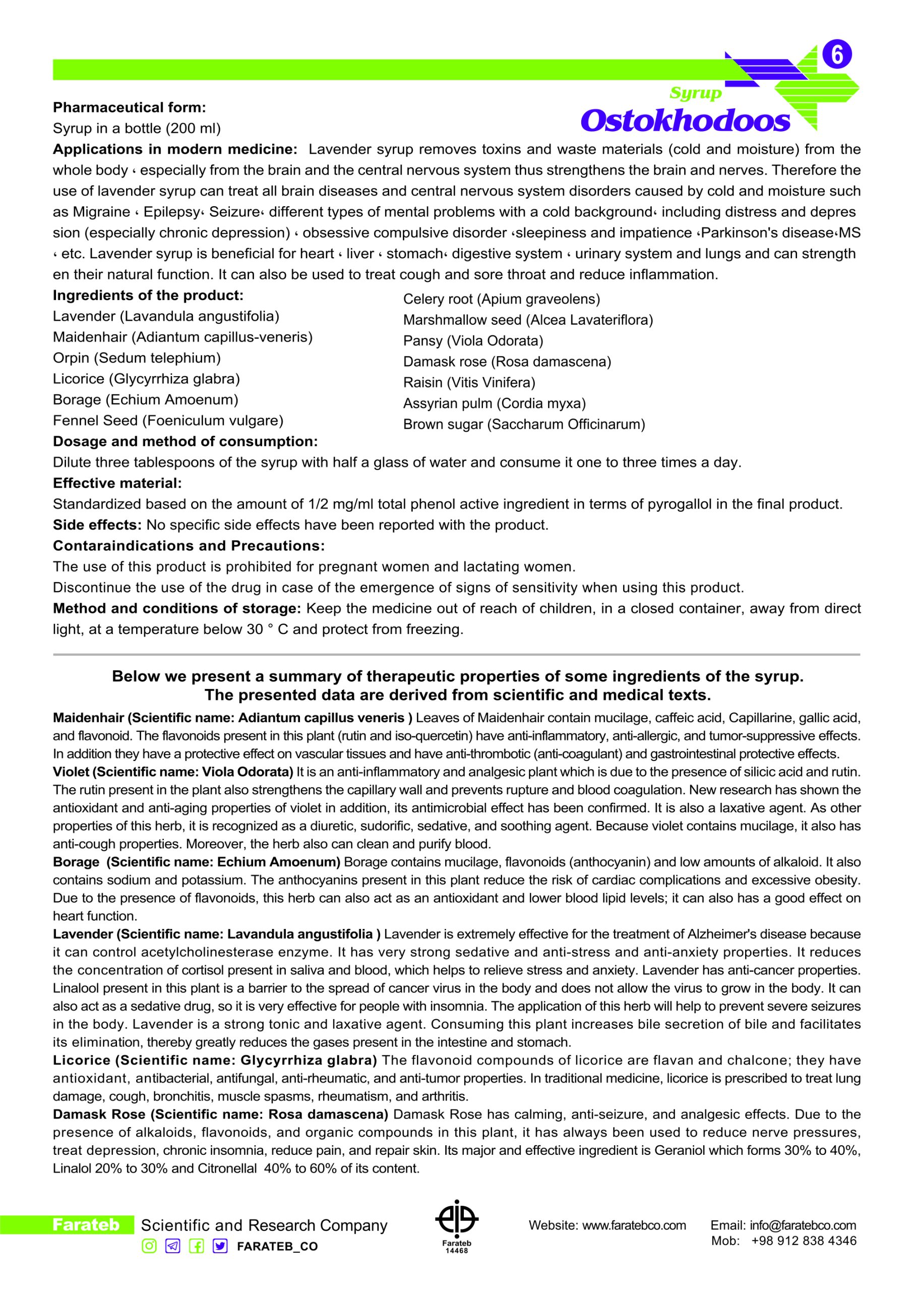 بروشور انگلیسی شربت اسطوخودوس فراطب